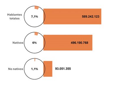 Casi 590 millones de personas hablan español en la actualidad, ya sea como lengua nativa, segunda o extranjera. Es la segunda lengua del mundo por número de hablantes nativos (con más de 496 millones) y el tercer idioma por presencia internacional, después del inglés y el francés. El 7,1 % de los habitantes del planeta pueden comunicarse en español. No obstante, las proyecciones indican que, a pesar de que la comunidad hispanohablante crecerá en términos absolutos en los próximos cincuenta años, su peso relativo irá disminuyendo progresivamente de aquí a final de siglo, debido fundamentalmente a un descenso de la natalidad en los países hispanohablantes, que cederán definitivamente el testigo a otras regiones del planeta, como el África subsahariana o Asia central y meridional, como motores del crecimiento de la población mundial. En 2100, solo el 6,3 % de la población mundial podrá comunicarse en español. Estados Unidos será el que lidere el crecimiento de la comunidad hispanohablante global a partir de 2066.