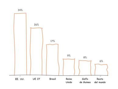 23.383.440 de alumnos estudian español en 2025. El análisis de las cifras de estudiantes de español como lengua extranjera dibuja un mapa muy concentrado geográficamente: casi el 80% de los estudiantes de español que hay en el mundo se reparten entre Estados Unidos, la Unión Europea y Brasil, por ese orden. Fuera de estos tres espacios, el estudio del español tiene gran relevancia en el Reino Unido, que, en los últimos años, ha registrado un crecimiento constante en su número de alumnos de español, y en algunos países del África Subsahariana, especialmente en aquellos situados en la región del Golfo de Guinea o donde el francés es lengua oficial o cooficial, como Costa de Marfil (con 894.304 estudiantes), Benín (412.515), Senegal (356.000), Gabón (167.410) o Guinea Ecuatorial (128.895). En el resto de los países, sin embargo, el estudio del español no llega a rebasar el umbral de los 100.000 alumnos, siendo apenas testimonial en muchos de ellos.